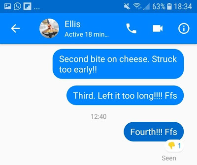 I moved on. Finding a swim that looked both chubby and pikey, I settled down with both rods. Now, the best way to describe what happened is to show you the real time comments....